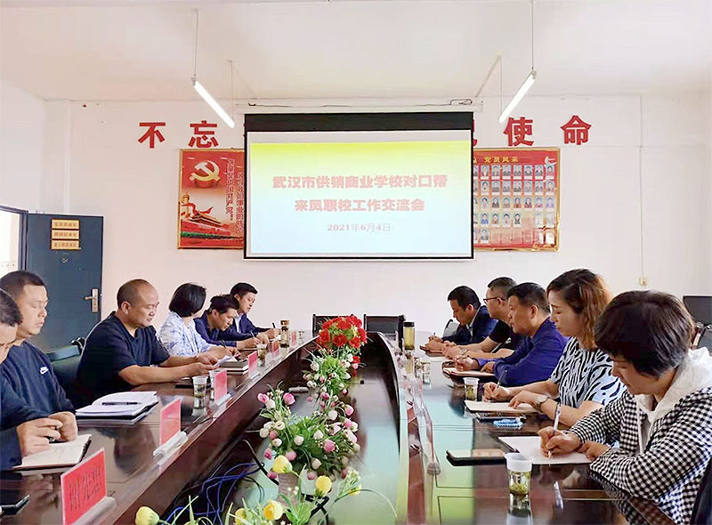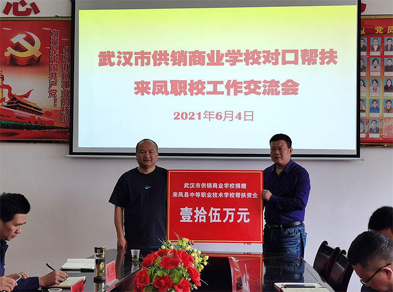 (通讯员徐薇薇)2021年6月3日,武汉市供销商业学校校长沈敏率学校职能部门负责人代表一行五人来到来凤县中等职业技术学校,进一步深化落实2021年度对口帮扶工作。
