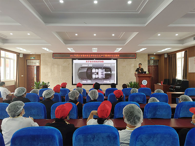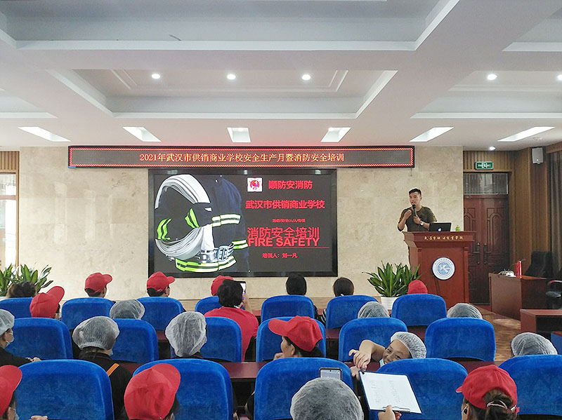 校园网消息(通讯员 范长城)为进一步普及消防安全知识,提升学校食堂管理人员的安全责任意识,规范学校食堂管理人员的行为,2021年6月21日下午,在实训楼一楼学术报告厅举行了“2021年武汉市供销商业学校安全生产月暨消防安全培训”,全体食堂员工参加了此次培训,本次培训由保卫科范长城副科长主持。