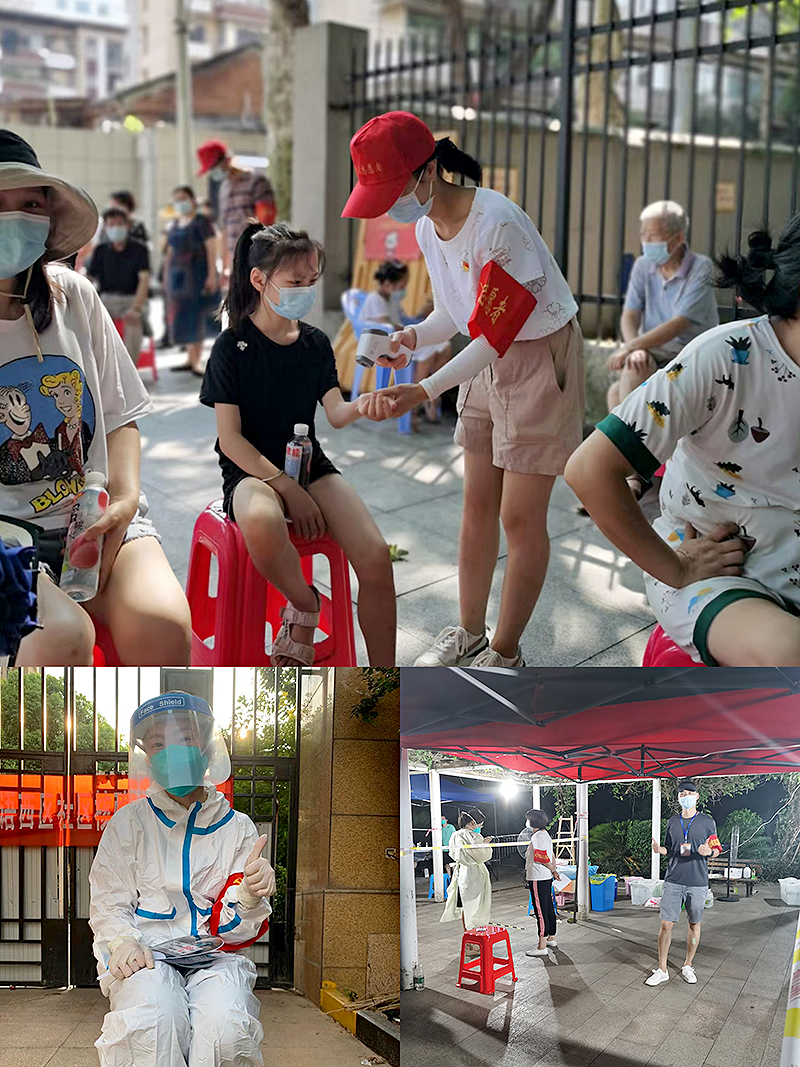 除了学校对口军院社区,8月4日当天学校其他的党员教职工们迅速到居住地社区服务,积极协助核酸检测工作,真正做到了党员干部“沉”下去 ,服务社区“实”起来。