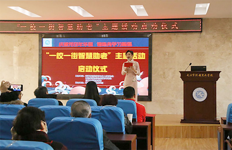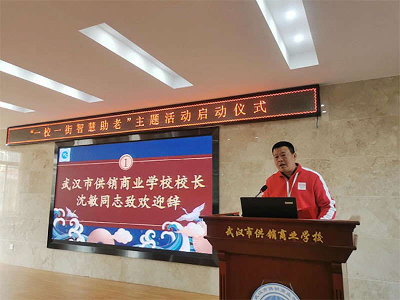 (通讯员 关越)北风不染白髭须,智慧助老供校行。为贯彻落实《教育部办公厅关于举办2021年全民终身学习活动周的通知》精神,按照《关于举办2021年武汉市全民终身学习活动周的通知》要求,由市职业教育与成人教育协会、市职成教协会职业教育专委会联合狮子山街道办事处主办,市供销商业学校承办的“一校一街智慧助老”主题活动启动仪式于12月23日上午在学术报告厅举行。此次活动中,市供销商业学校充分发挥中职学校教育资源优势,与洪山区狮子山街共同开展系列助老爱老活动,共建共享、提质赋能、合作共赢,形成服务全民终身学习的发展合力,旨在提升辖区老年居民朋友的生活品质和幸福指数。市职成教协会陈浩川会长、狮子山街杨建忠书记及欧德元副主任、市职业教育专委会会长崔亮、市供销商业学校书记王涛、校长沈敏出席了此次活动。各兄弟中职学校领导、狮子山街道办事处相关领导和老年居民代表们也一同参加了活动。
