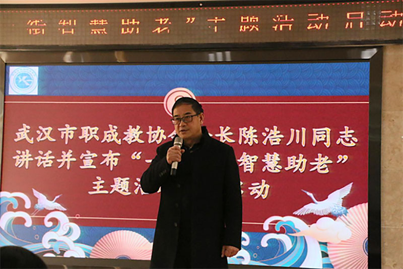 活动最后,由武汉市职成教协会陈浩川会长讲话并宣布“一校一街智慧助老主题活动”正式启动。陈会长在讲话中同时指出,今年是第四次举办“一校一街智慧助老”主题活动,希望职业院校都要为继续教育发挥自己的作用,要跟自己所在的街道社区在终身学习和继续教育方面密切合作,并期待“一校一街”活动能一直开展下去。