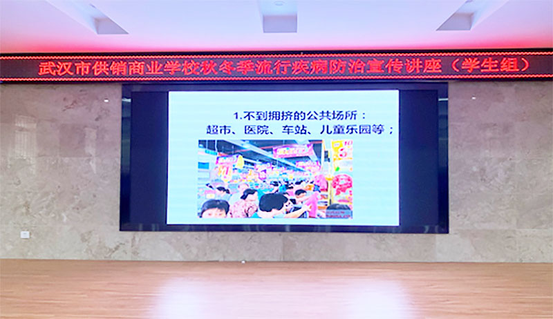 (通讯员 周敏 郑志文)为进一步做好学生保健工作,确保全校师生的身体健康,维护学校正常的教育教学秩序,2021年12月24日我校邀请了武汉长动社区卫生服务中心内科主治医师王妮倩作秋冬季流行疾病防治宣传专题讲座。本次学习,由各班班长和生活委员在学术报告厅集中学习,班主任组织学生在教室通过线上斗鱼直播学习。学工李彤主任、总务处周敏主任进班巡查健康学习,全体在校学生认真聆听了此次讲座。