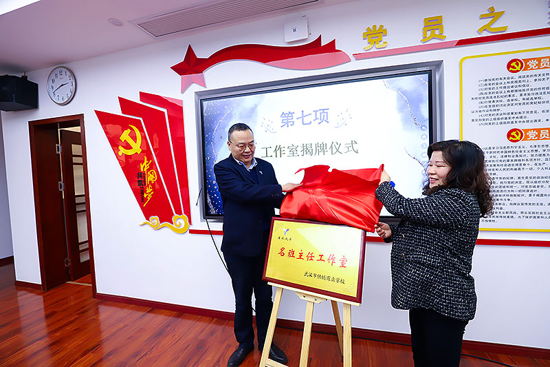 接下来,在老师们的期待与掌声中,教科院王蕾主任和学校王涛书记共同为“滴水成涛·名班主任工作室”揭牌。
