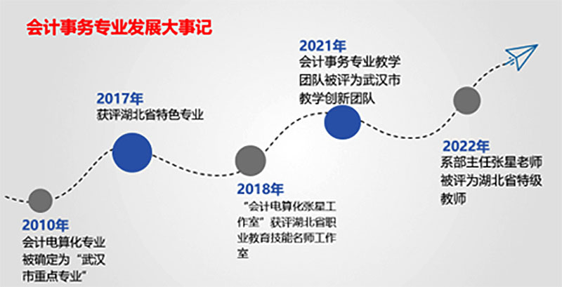 经过会计事务专业全体教师的不懈努力及实践积累,该专业成为武汉市以及湖北省的优势专业和特色专业。打造了一批高素质的“双师型”教师队伍,探索出了赛教融合、课证融通的中等职业教育专业建设道路和行之有效的推广经验,人才培养质量大幅提升。
