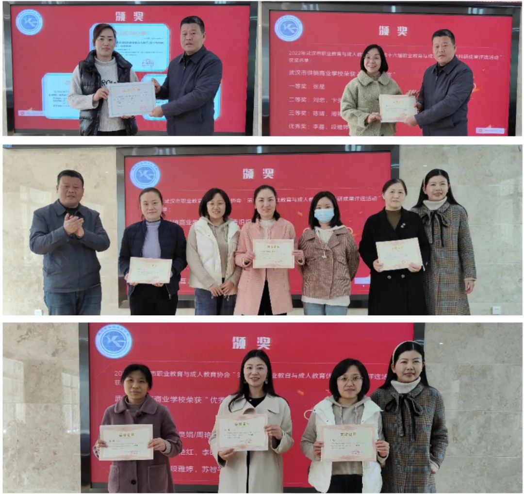 活动第一项为2022年全省教师教学能力大赛获奖老师和武汉市职成协“第十六届职业教育与成人教育优秀科研成果评选活动”中获奖老师颁奖,颁奖仪式旨在激励老师们守正创新,踔厉奋发,勇毅前行,不断在各类比赛中取得好成绩。
