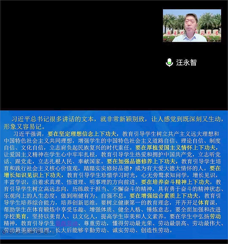 汪教授生动的话语、鲜活的案例以及灵活多变的提问和互动形式让全体参会教师收获颇丰。班主任是家校沟通的桥梁,是德育工作的主力军,是学生成长的领路人。相信通过本次专题讲座,每位班主任都能学会德育典型案例的挖掘与撰写,为班主任能力比赛打下坚实基础,强化专业素养,扎实建班育人,稳步推进立德树人根本任务。