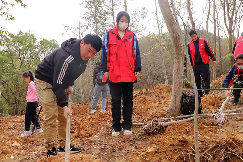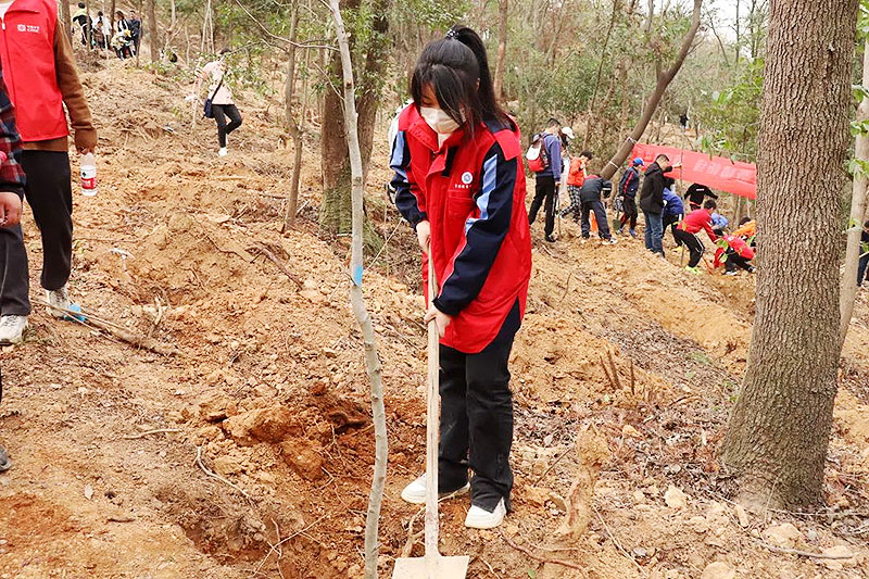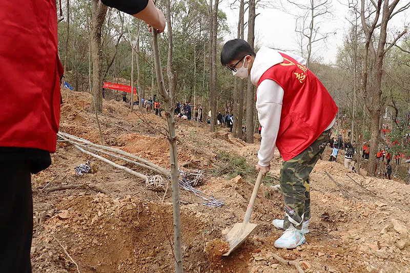 风和日暖山水醒,春到人间草木生。在这春风习习、杨柳依依的时节,我们迎来了第45个植树节。为进一步美化城市建设环境,激发学生们劳动的热情和意识到环保的重要性。武汉市供销商业学校团委郑志文老师带队,组织志愿者代表队前往青龙山国家森林公园参加了本次植树节活动。