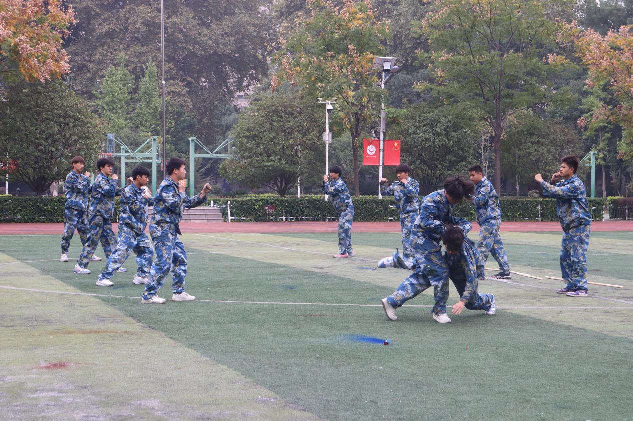 同学们弓步冲拳、穿喉弹踢、马步横打......他们出拳有力,斗志昂扬,一招一式,虎虎生风。军体拳活动培养了学生爱国强军的情怀,增强了不怕苦累、艰苦奋斗的意志品质,彰显出供校学子坚韧不拔、勇敢顽强的拼搏精神。