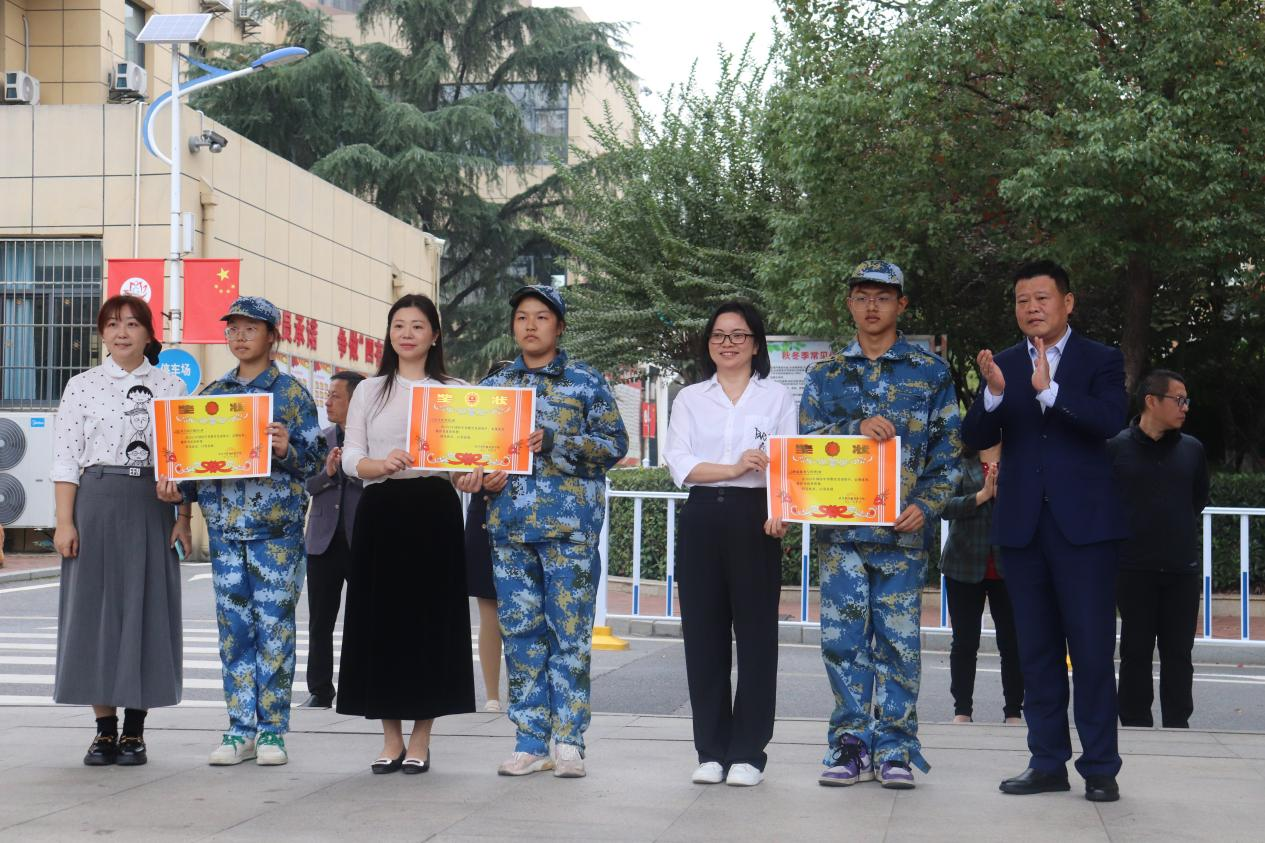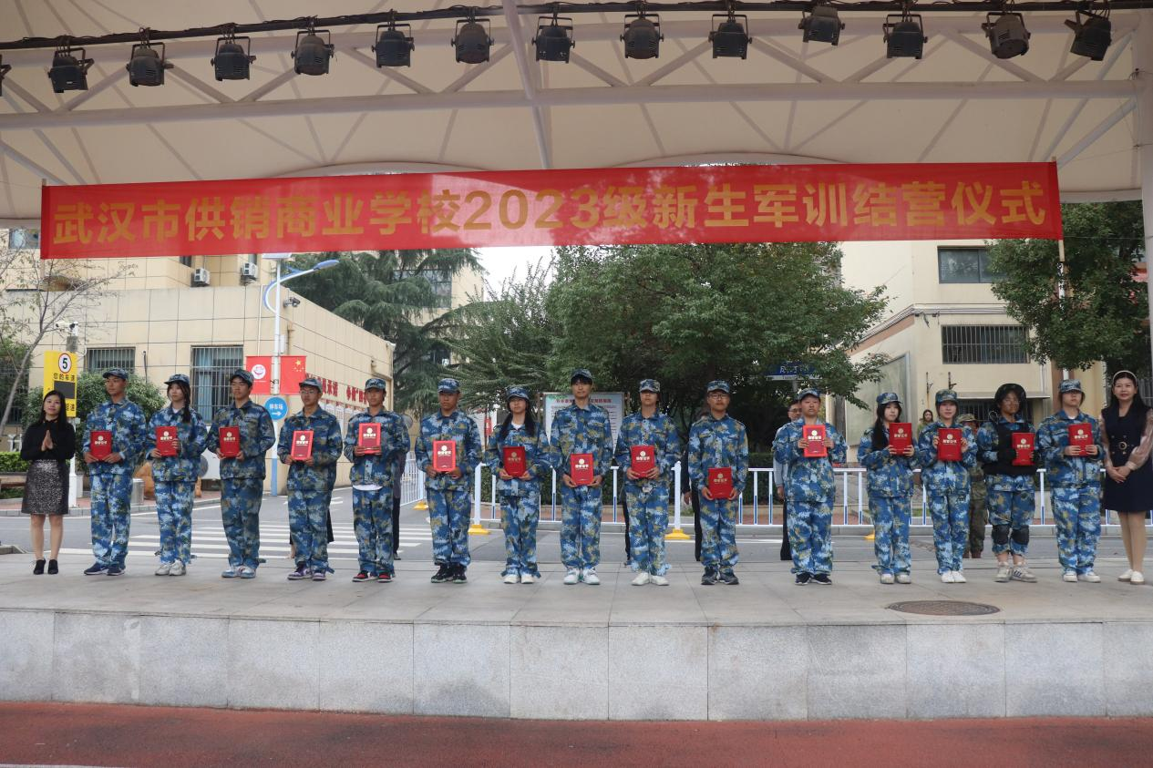 此次军训,共评选出218名优秀学员,51名钢铁战士以及3个优秀班集体,同时也向教官团队颁发锦旗。他们的登台领奖赢得了台下同学的热烈掌声。希望同学们以这次军训为起点,把军训中饱满的热情、顽强的毅力、必胜的信心化成学习的动力,积极主动地投入到学习和生活中去,努力拼博、奋发进取,在学习生活中锻炼自己、塑造自己、展示自己,以过硬的素质展现供销学子良好的精神面貌!