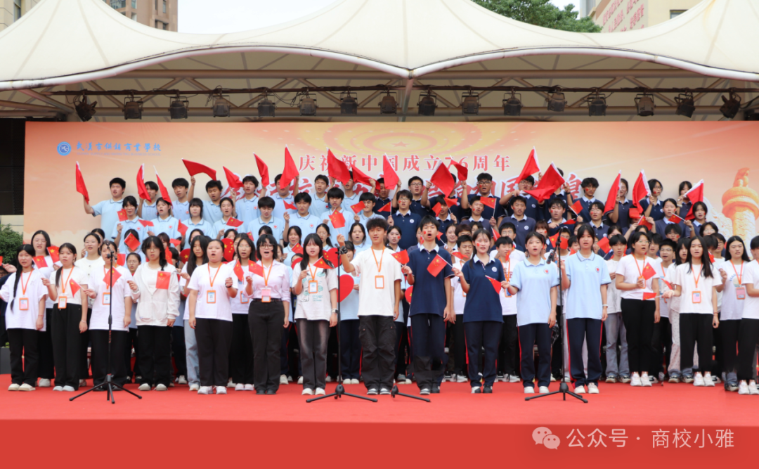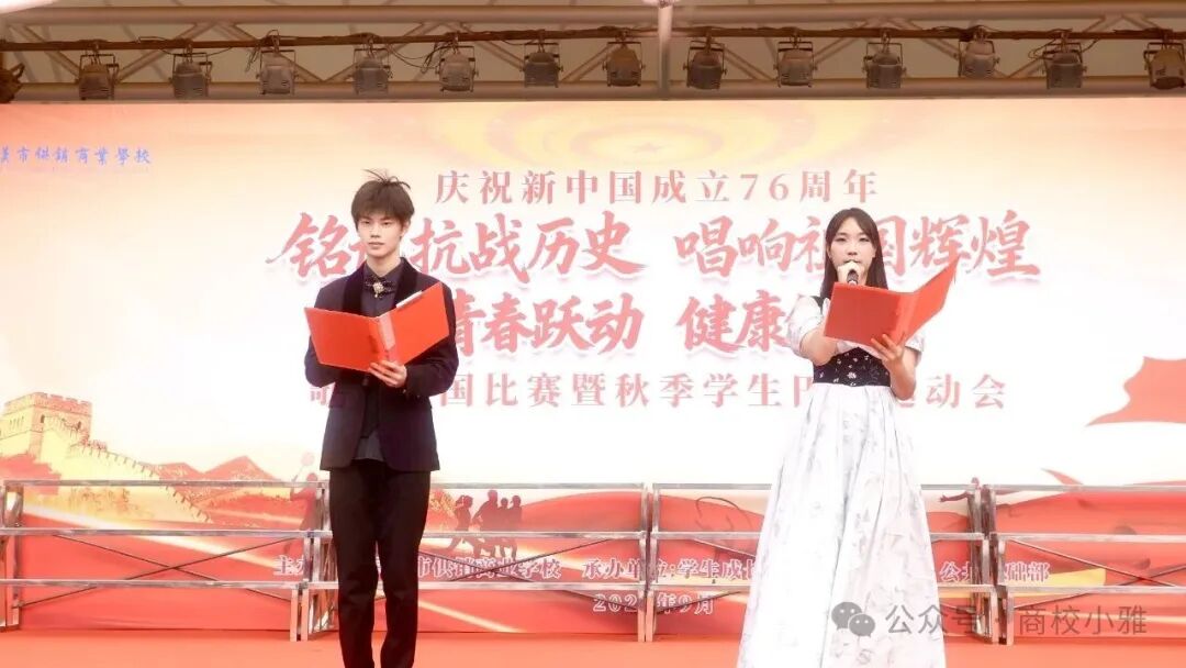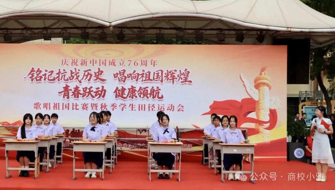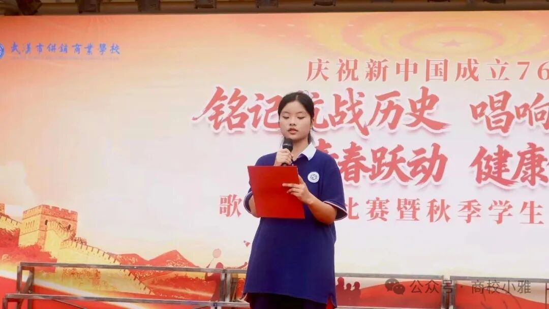 金秋送爽,丹桂飘香,在新中国成立76周年、纪念中国人民抗日战争暨世界反法西斯战争胜利80周年的重要历史节点,武汉市供销商业学校于9月29日上午在学校操场隆重举办“铭记抗战历史 歌唱祖国辉煌”歌唱祖国比赛暨“青春跃动 健康领航”秋季田径运动会。全校师生与家长代表齐聚一堂,在庄严热烈的氛围中,共同开启一场兼具红色教育意义与青春活力的校园盛会。
