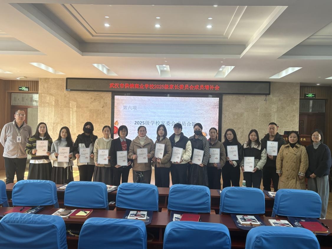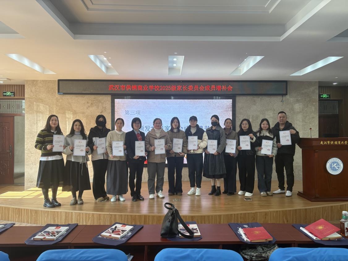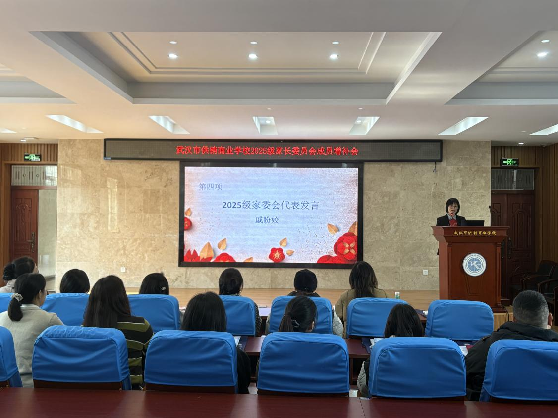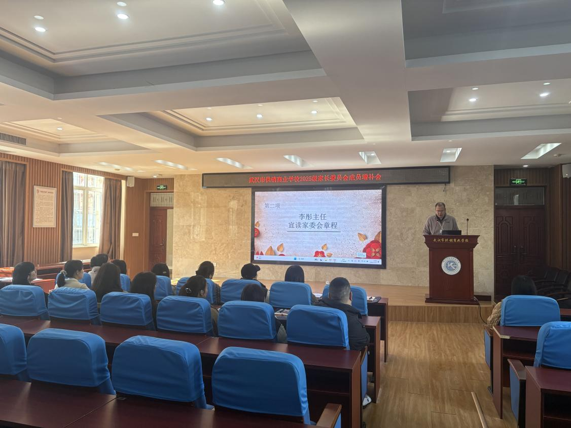 (通讯员 熊莉)为进一步完善家校社协同育人机制,充分发挥家长在学校教育、管理及服务工作中的桥梁作用,2025年11月21日下午,武汉市供销商业学校在学术报告厅举行了“2025级家长委员会成员增补会议”。学生思政发展中心老师张芸主持仪式,学生思政发展中心主任熊莉、学生成长保障中心主任李彤及全体新增补家委会委员出席。