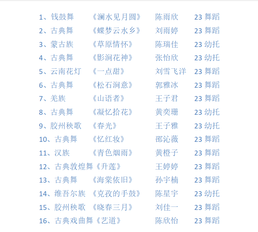 第十届(25年)舞蹈教学成果(个人)展示节目单