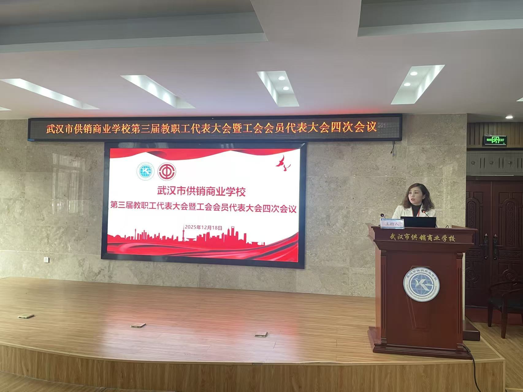 (通讯员 关越)12月18日,市供销商业学校第三届教职工代表大会暨工会会员代表大会四次会议在学术报告厅隆重召开。全体教职工代表与工会会员代表齐聚一堂,共商学校发展大计、共绘高质量育人新蓝图,会议由党群工作部主任徐薇薇主持。