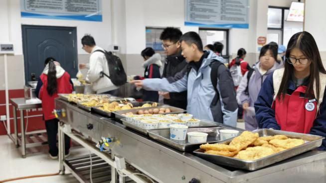 清晨七点,食堂大门准时敞开,迎接首批就餐师生。打餐窗口前,员工们面带微笑,一边精准把控餐食分量、快速盛菜,一边送上“多吃点”“小心烫”的朴实叮嘱,让烟火气中满是暖意。早餐高峰期过后,他们马不停蹄清理窗口、擦拭餐桌,为下一波就餐做好准备。