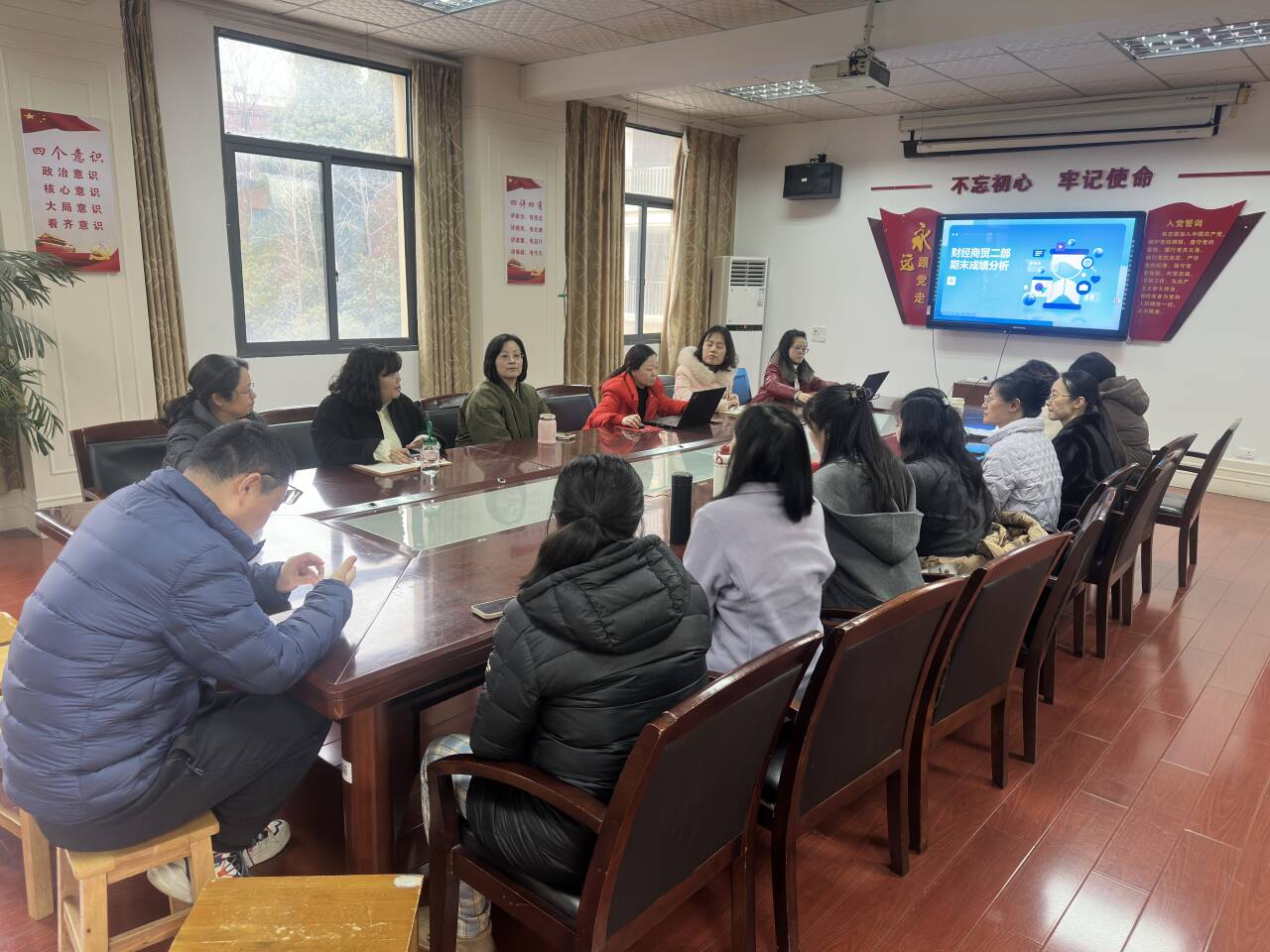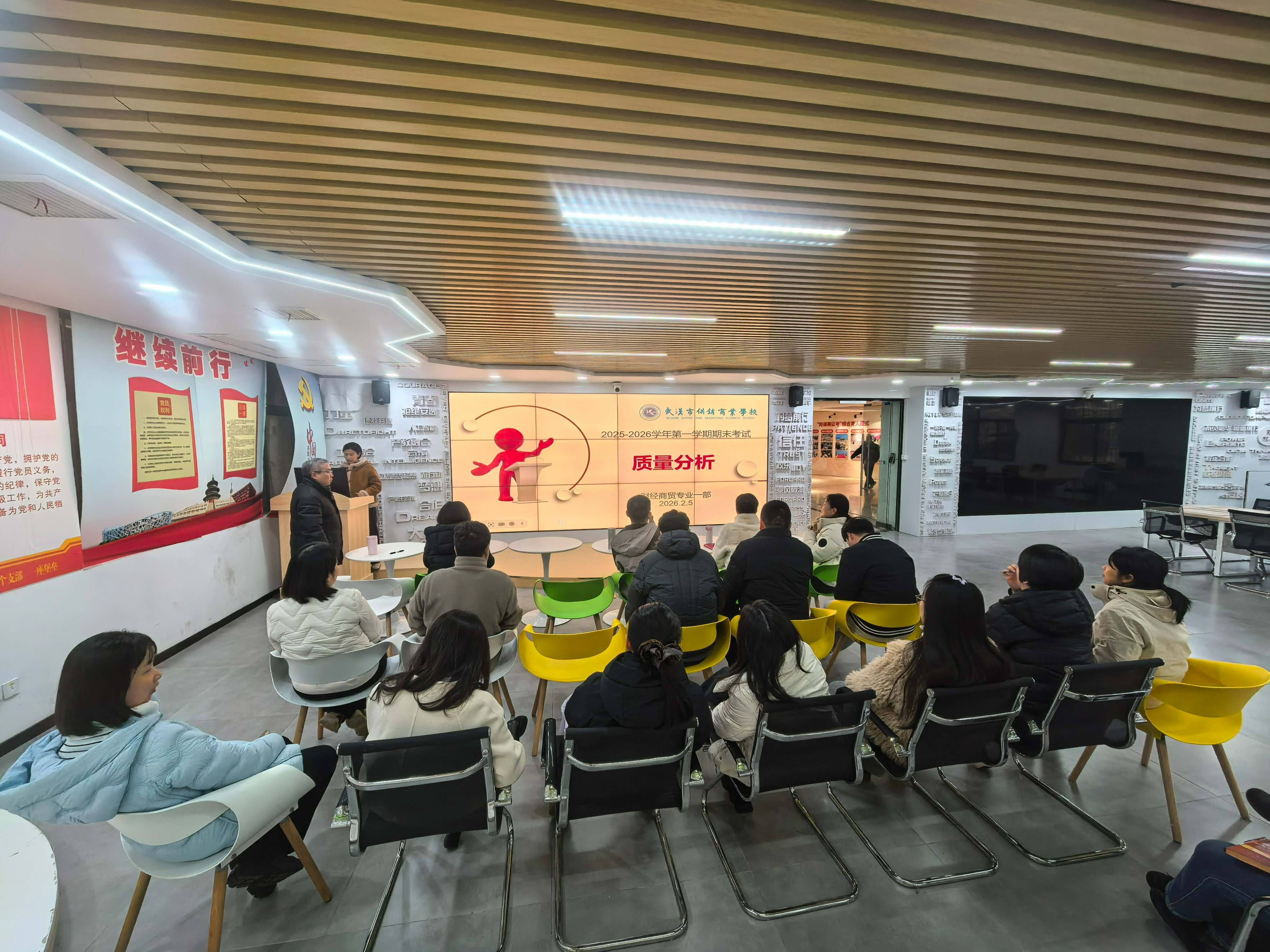 专业课分析分四个会场同步进行。王艳霞主任、汪文艳主任、彭丹主任、刘艳主任分别组织各专业教师开展质量剖析。各会场围绕专业课程教学目标达成度、技能考核情况、学生职业能力培养等核心议题展开热烈讨论,为下学期专业教学改革明确了方向。