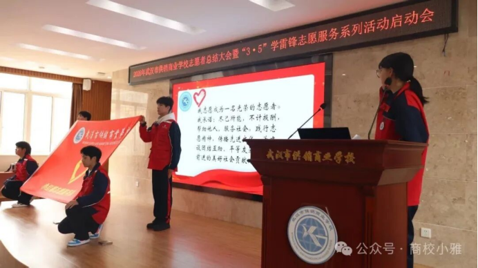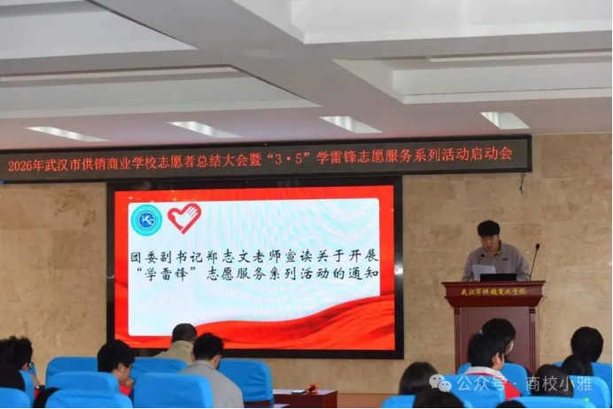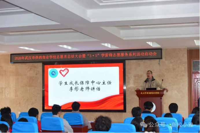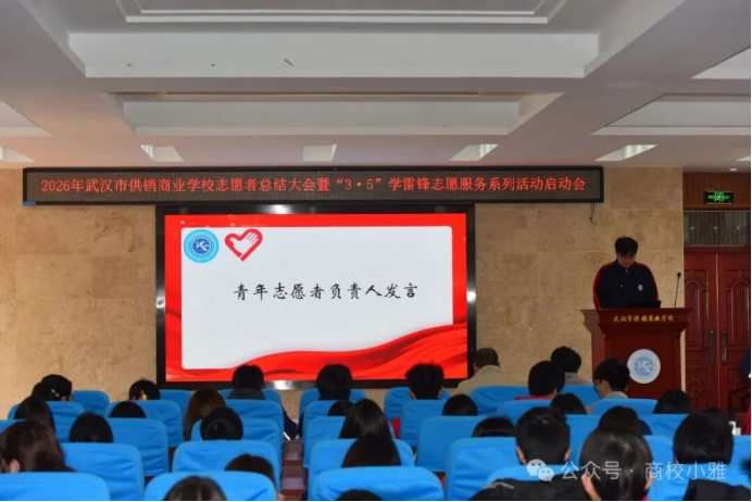 (通讯员 郑志文)春风送暖,雷锋同行。3月5日中午,学术报告厅内暖意融融,市供销商业学校召开2026年志愿者总结大会暨“3·5”学雷锋志愿服务系列活动启动会在学术报告厅隆重启幕。大会全面总结了过去一年学校志愿服务工作,表彰先进、树立榜样,凝聚全校志愿服务力量。学生成长保障中心主任李彤、校团委副书记郑志文与100余名优秀志愿者齐聚一堂,共话奉献,共启新程。
