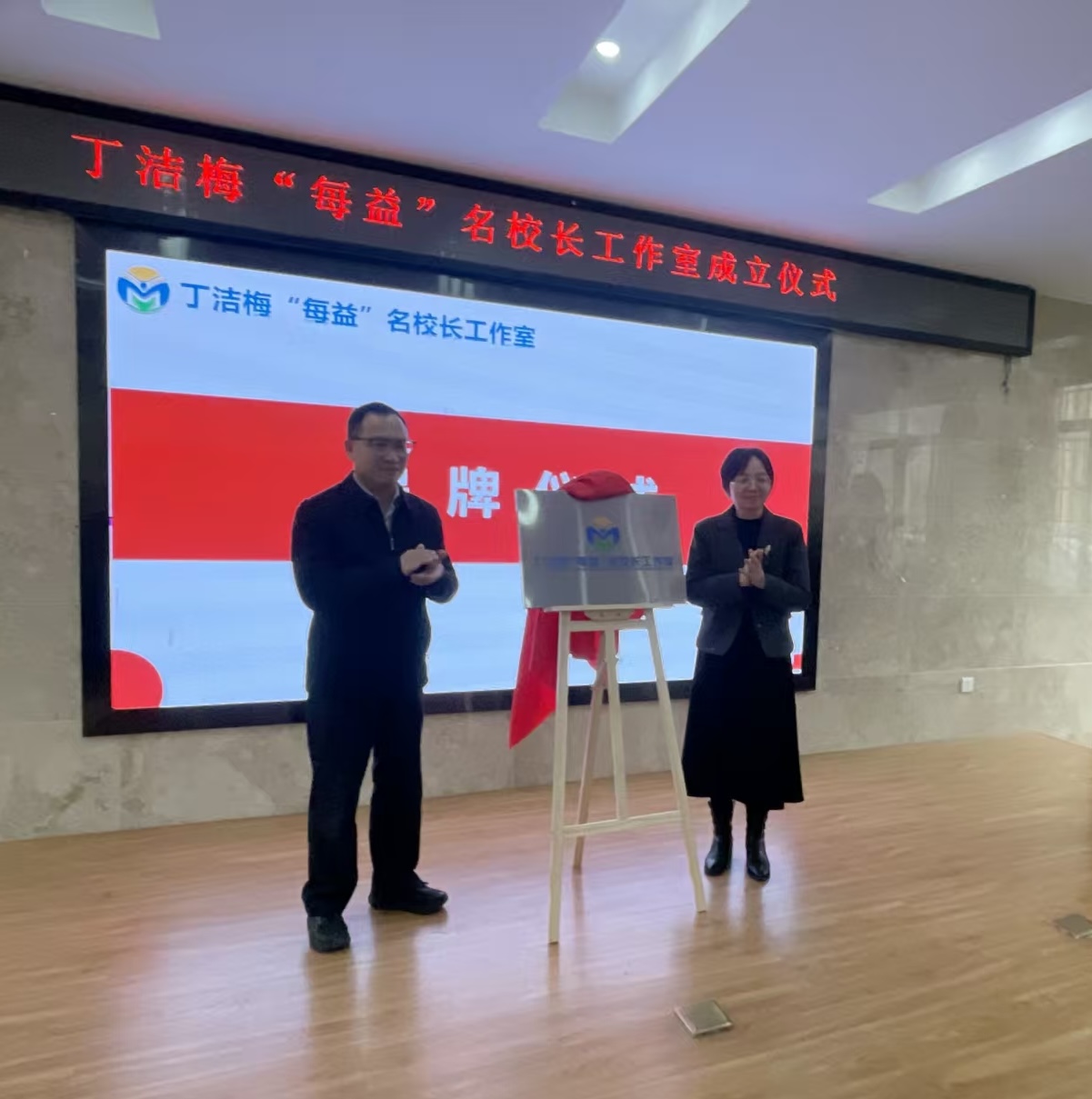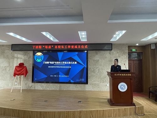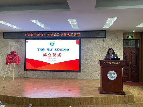 在全场热烈的掌声中,仪式迎来重要环节。市教育局职成教处处长李奇兵、市教科院职成室主任周凌共同为丁洁梅“每益”名校长工作室揭牌,红绸轻启,牌匾生辉,标志着工作室正式扬帆起航,开启武汉职教协同发展的新篇章。